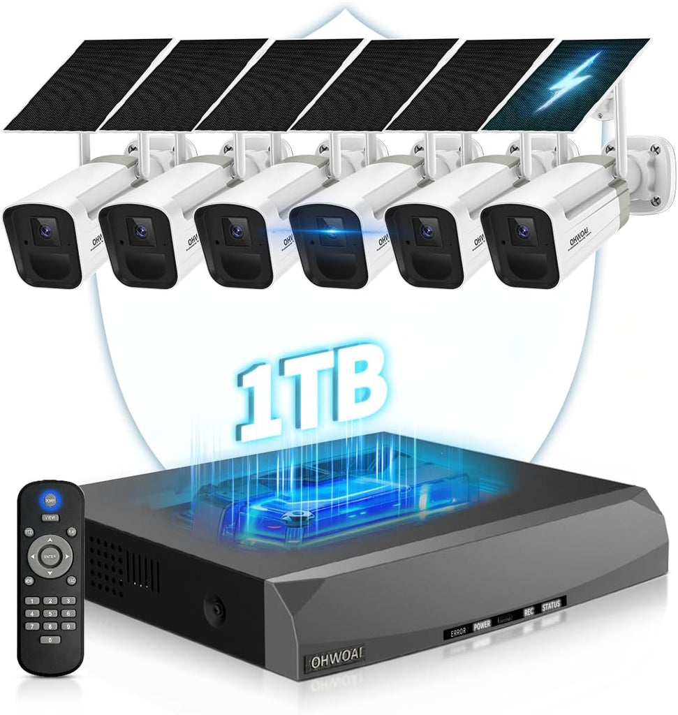 《100% Wire-Free》Wireless Outdoor Security Camera System, Solar Powered WiFi Cameras Systems with PIR Motion Detection, 6cams
