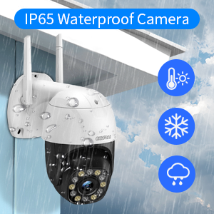 Cámara Resistente al Agua IP65La cámara resistente al agua de grado profesional IP65 garantiza una grabación continua independientemente de las duras condiciones climáticas, lo que la hace adecuada tanto para uso interior como exterior. Protege eficazmente tu casa. El rango de temperatura de funcionamiento de la cámara PTZ WiFi para exteriores es de -5°F a 140°F, lo que permite un funcionamiento confiable en una amplia gama de entornos. |