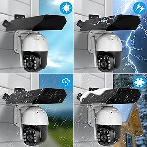- Durable Material: This UV and water-resistant camera roof with good tenacity and high reliability is made of anti-rust metal, very durable and lightweight. The waterproof cover can shield rain, direct sunlight, dust, sand, fog and snow, keep your cams clean and dry, thus prolong the life span.
